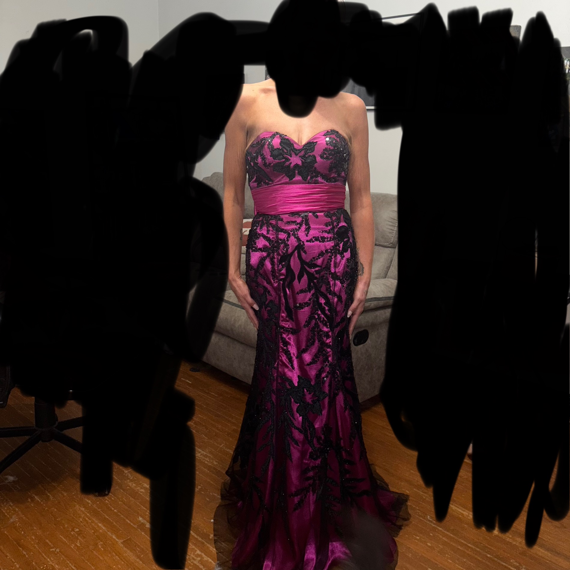 Fuschia & Black Detailed Evening Gown