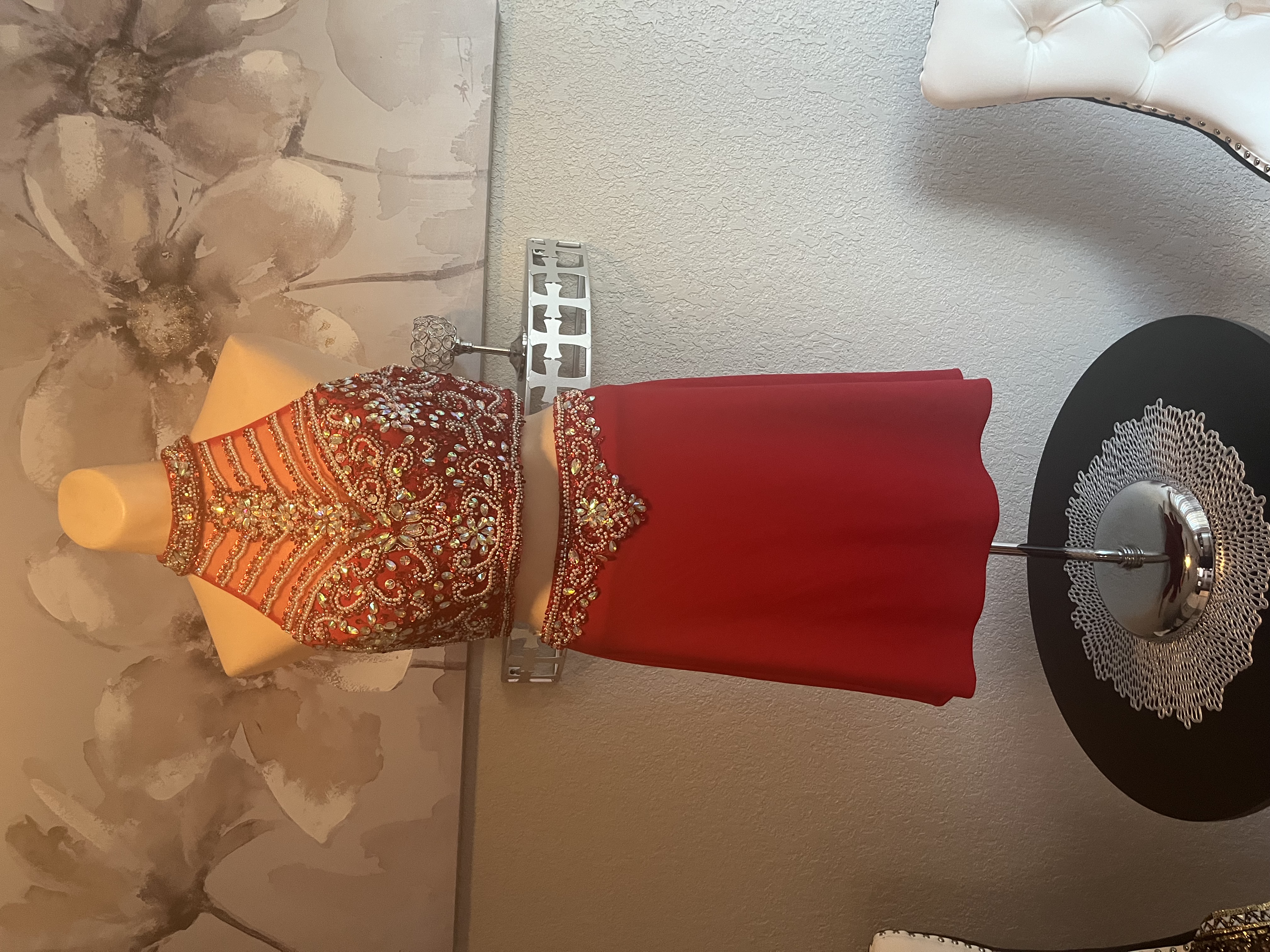 Red Embellished Evening Gown