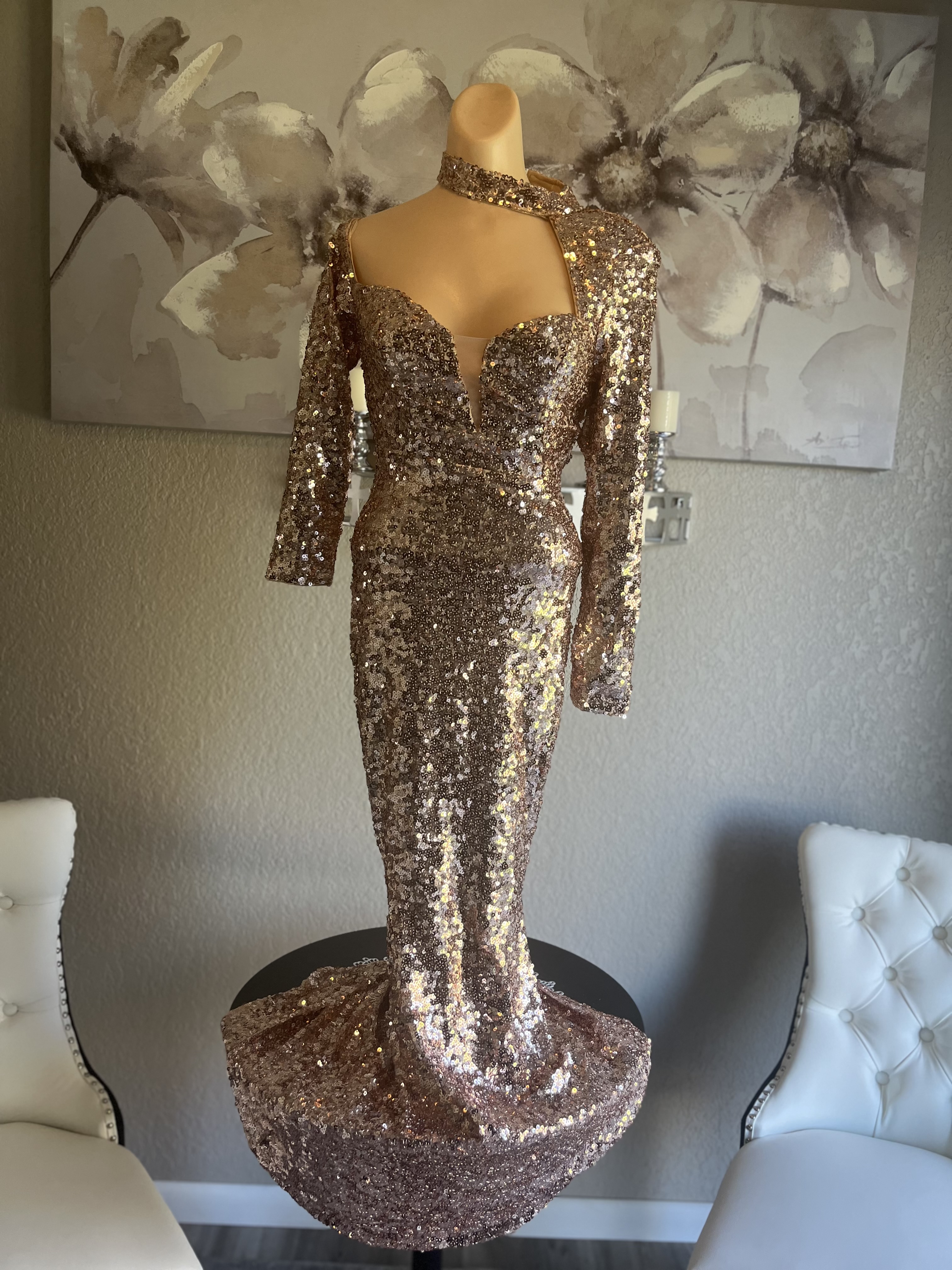 Sequined Rose Gold Evening Gown