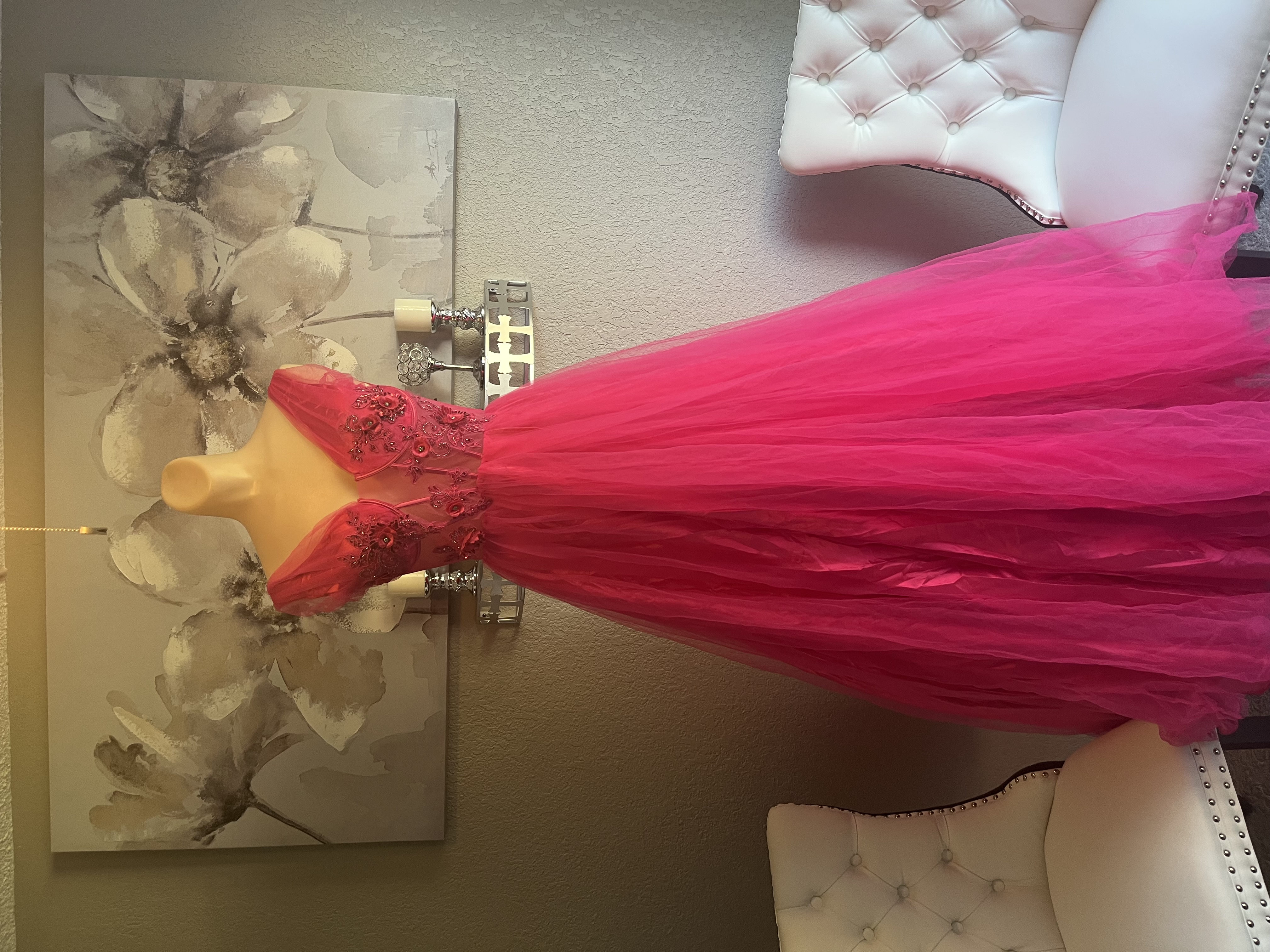 Vibrant Pink Tulle Evening Gown