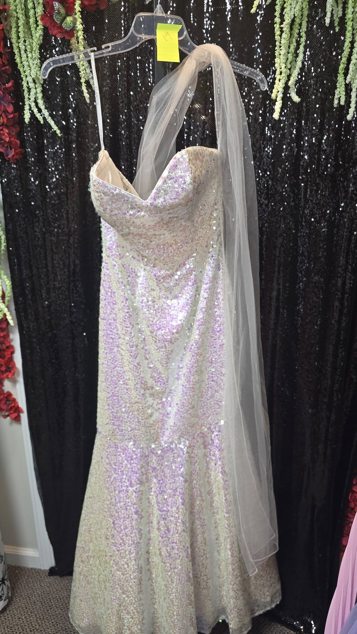New Clarisse sz 10 Sequined White AB Evening Gown with Veil