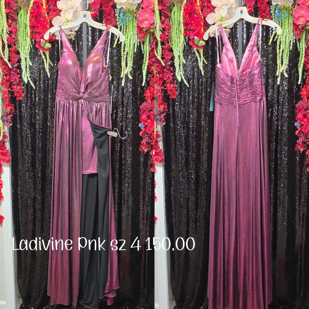 Chic and plush Ladivine evening gown in a stunning fuchsia shade. Features a sleek design with a cinched waist and v-neckline, ideal for various formal occasions.