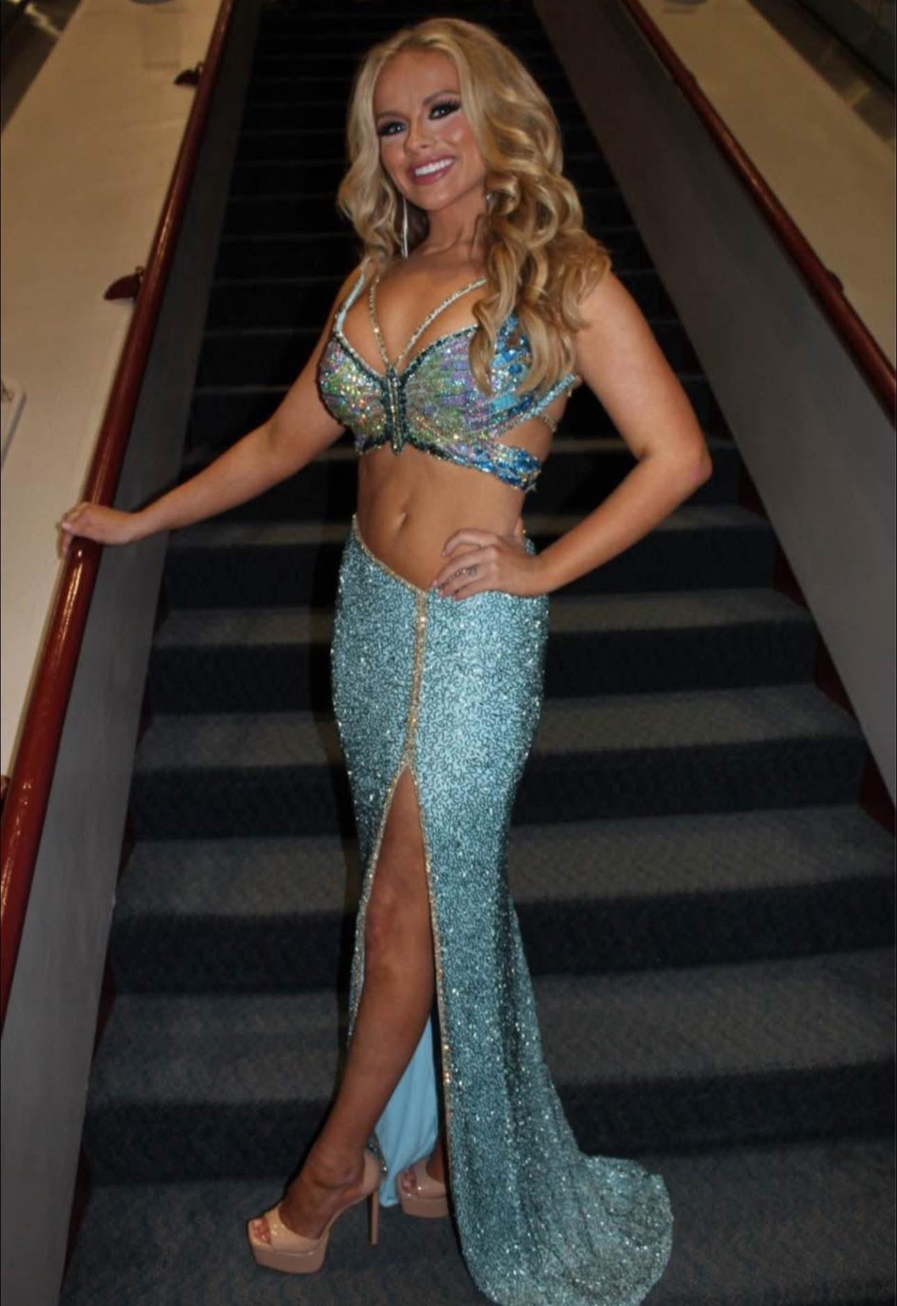 Dazzling turquoise two-piece set featuring a cropped top and a matching high-slit skirt. Ideal for adding a touch of glam to any upscale event.