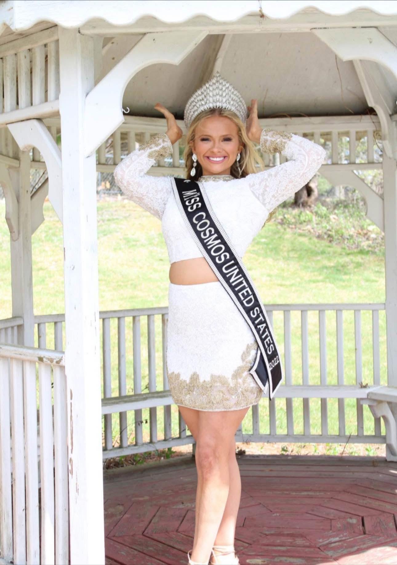 Stunning two-piece set featuring a white long-sleeve crop top and a matching skirt with golden embellishments. The fabric has a lacy texture, perfect for adding a bit of flair to your wardrobe.