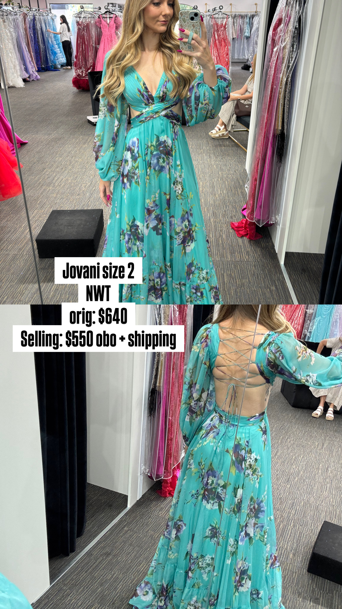 Striking long dress featuring a vibrant aqua base color with bold floral patterns. Bell sleeves and unique back strap detail add a touch of charm and sophistication. Perfect for a standout appearance.