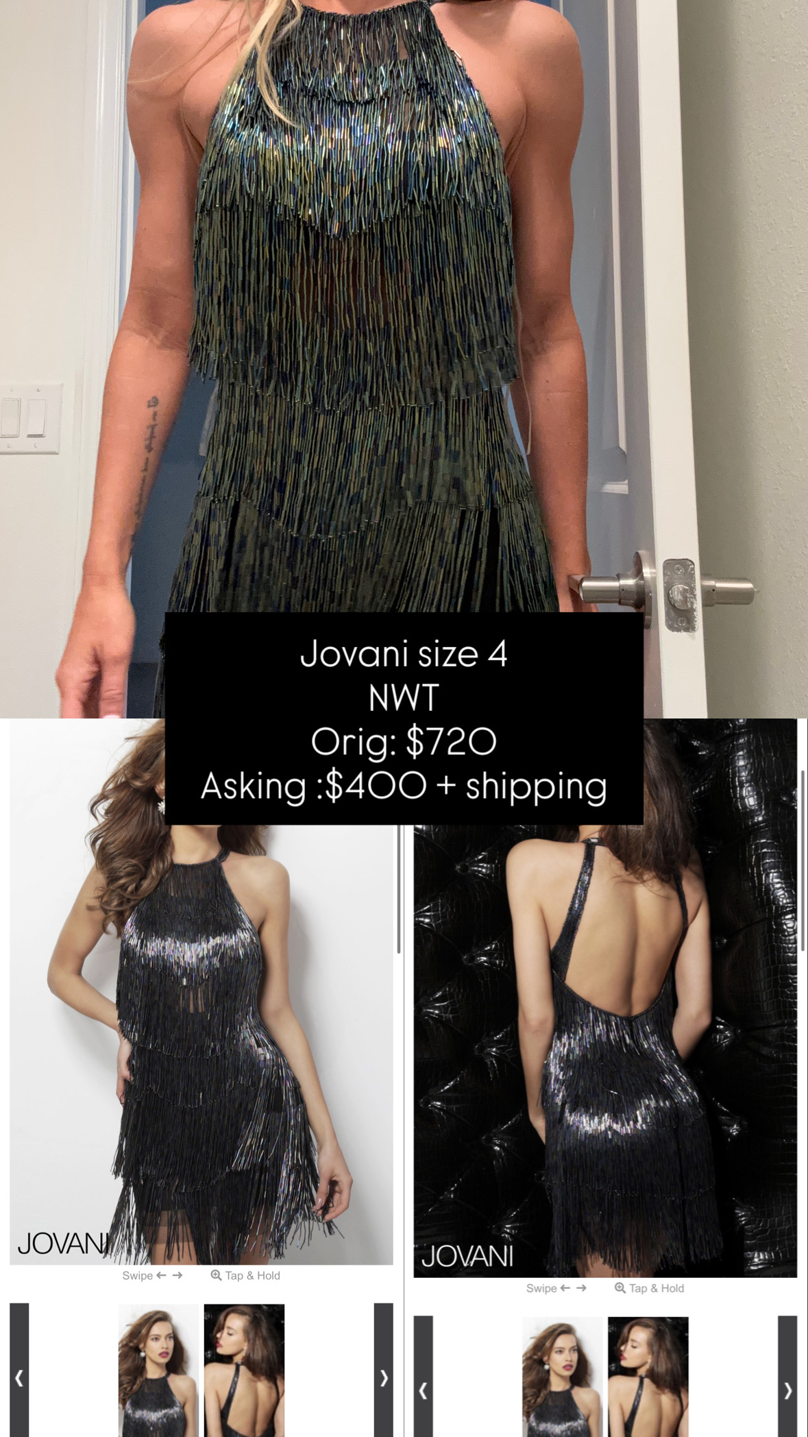 Stunning Jovani halter neck dress with a vibrant fringe design that catches light beautifully. Ideal for standing out at any party or event.